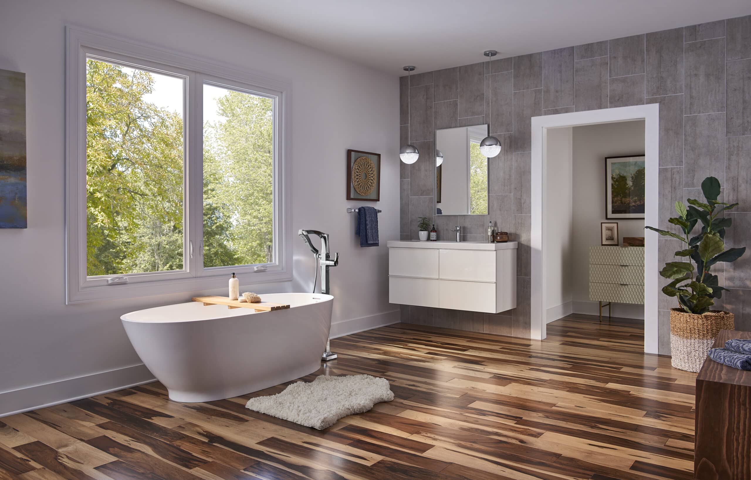 - Color-coordinated hardware gives windows a beautiful, clean look.